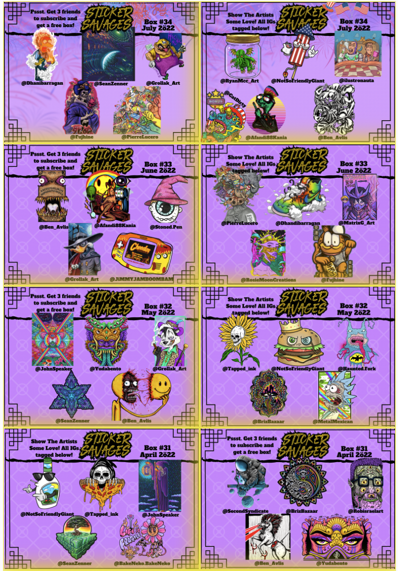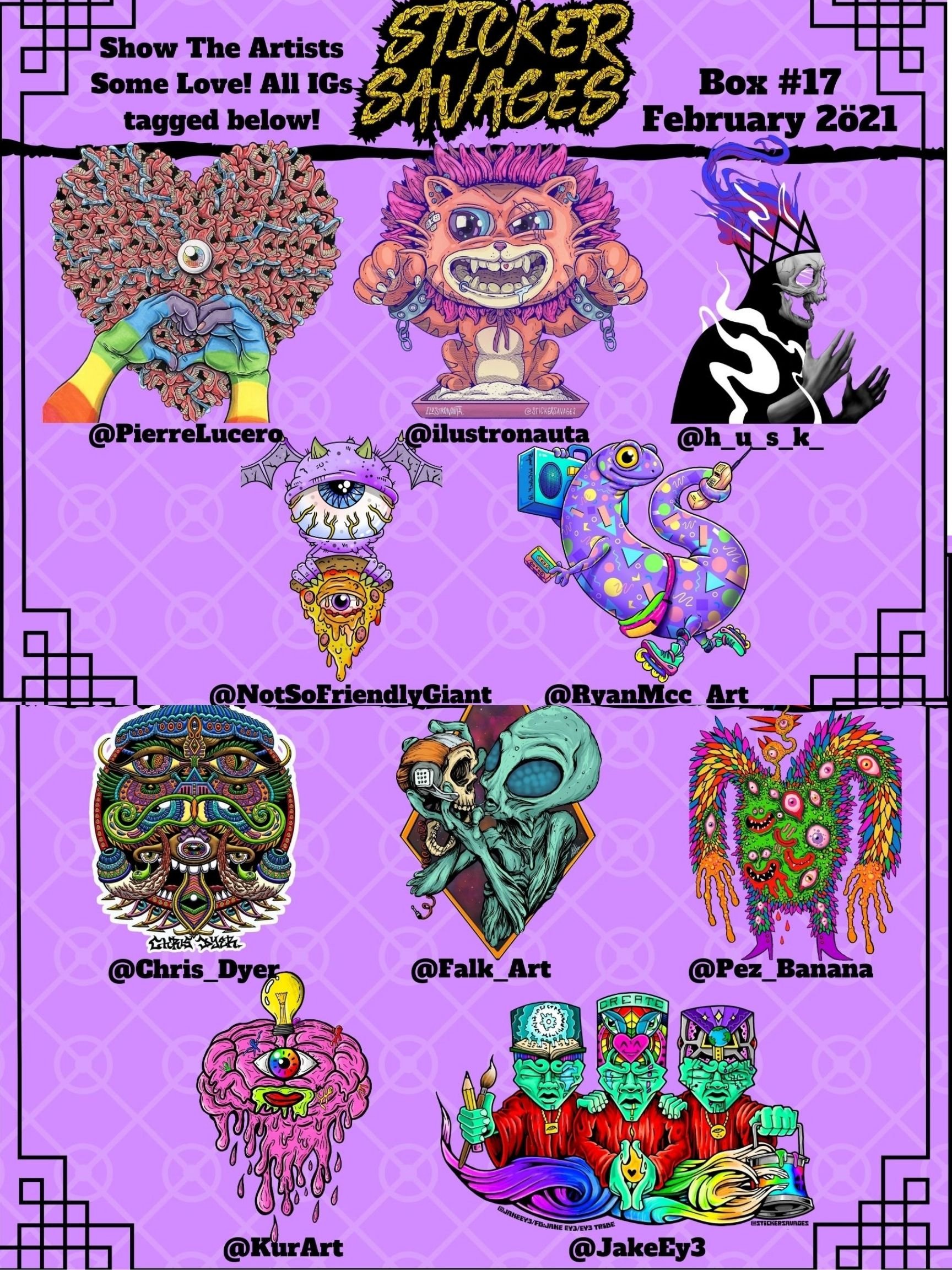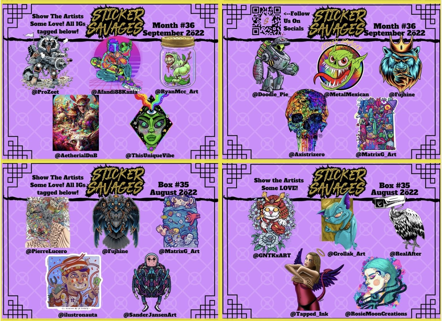 Sticker Savage Subscribers are mailed out 10 unique, exclusive stickers monthly. These stickers are all hand picked by our team from top artists on instagram from around the globe. Check out our previously released stickers below, and don't forget to subscribe today to not miss out on any future drops!