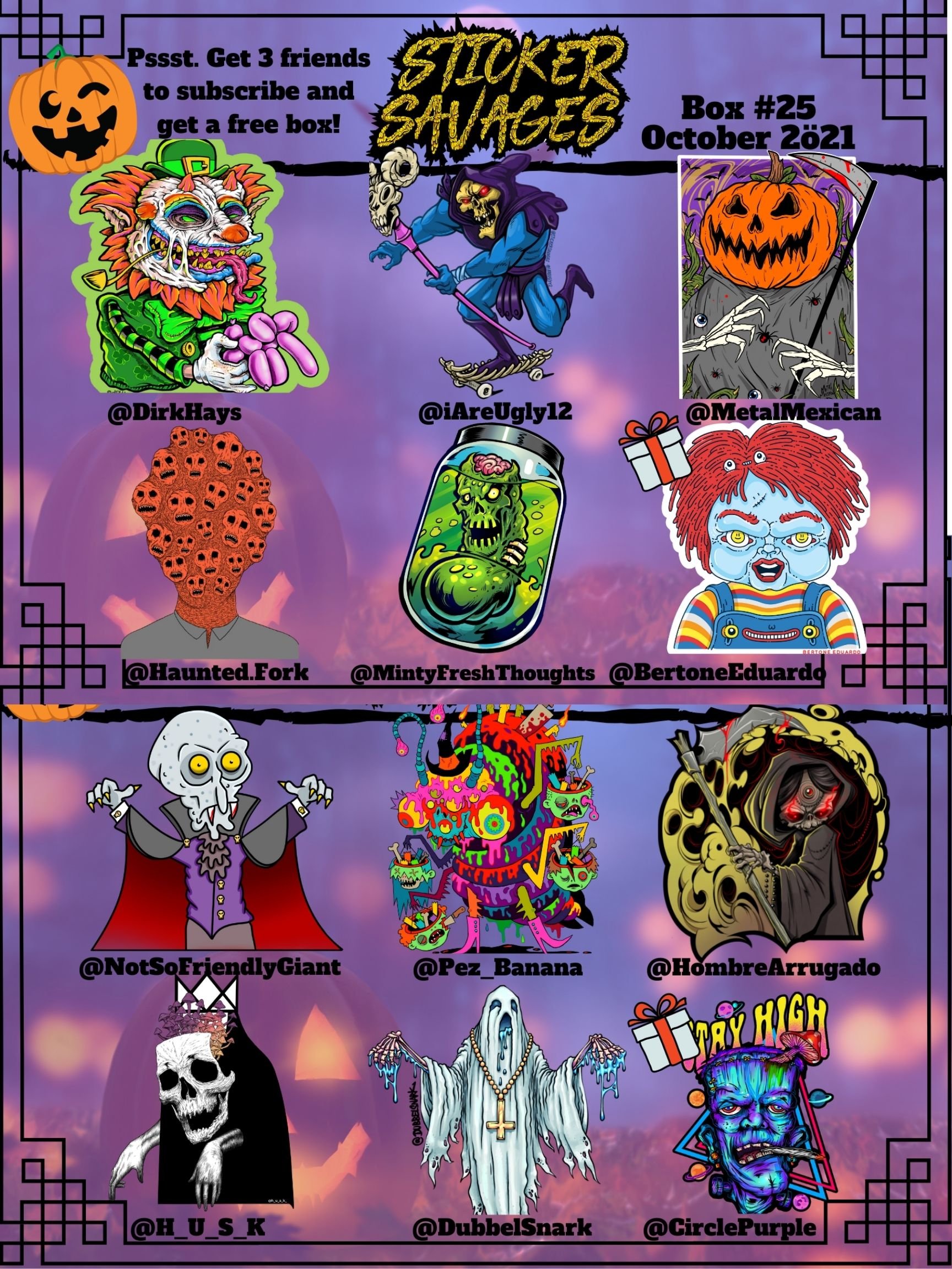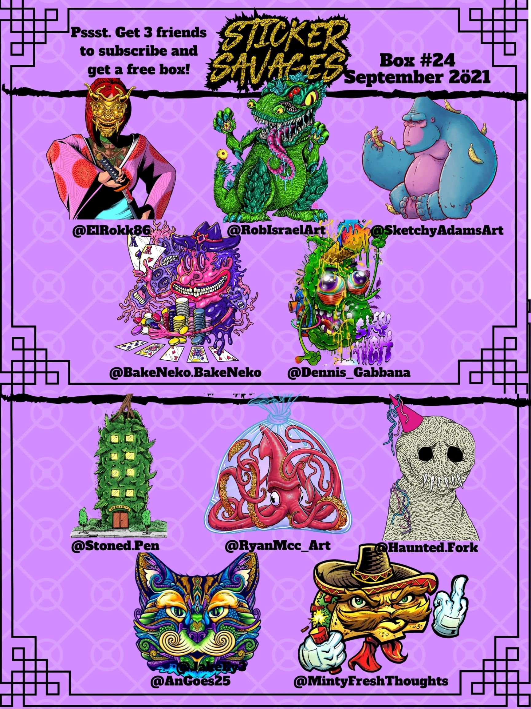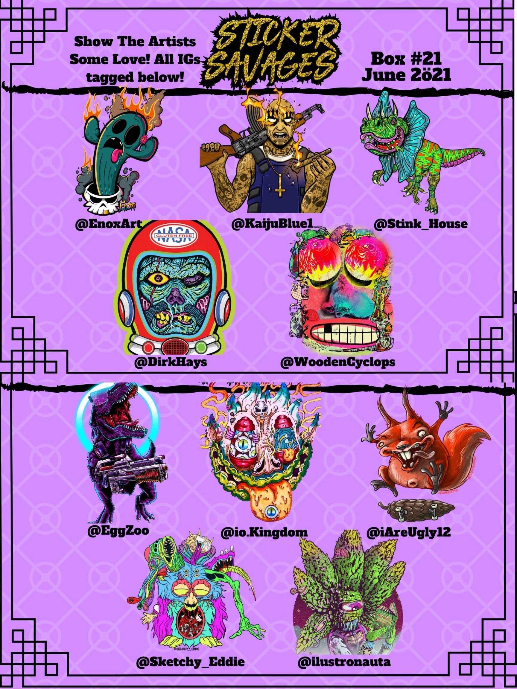 Sticker Savage Subscribers are mailed out 10 unique, exclusive stickers monthly. These stickers are all hand picked by our team from top artists on instagram from around the globe. Check out our previously released stickers below, and don't forget to subscribe today to not miss out on any future drops!